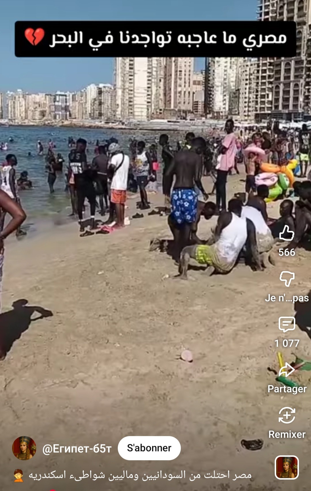 فيديو لتواجد كثيف للأفارقة على أحد الشواطئ التونسية بعنوان: "الوطن المفقود.. شواطئ تونس 2026".