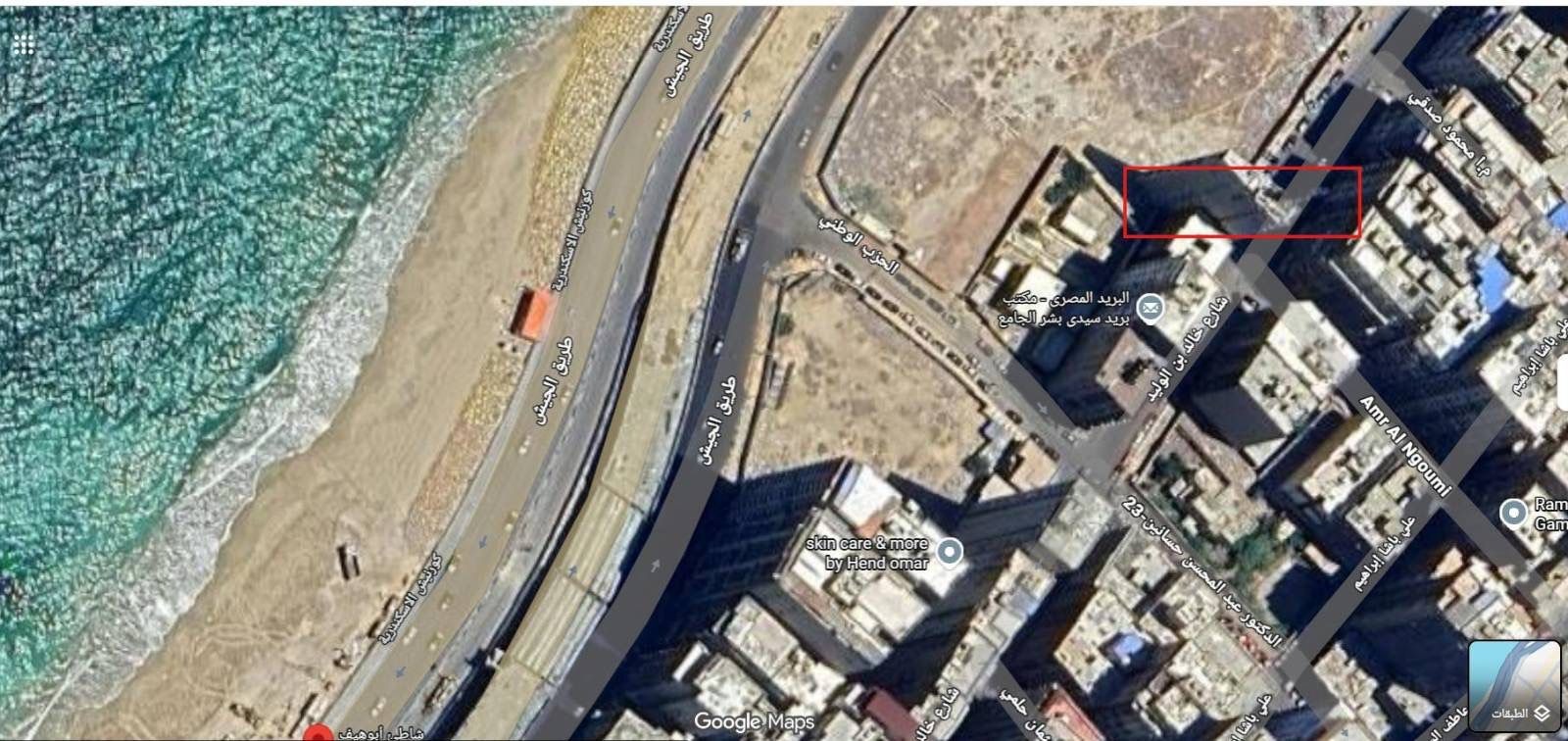 في مرحلة أخيرة وللتأكد أكثر من أن الفيديو في مصر، بحثنا عن شاطئ الإسكندرية عبر Google earth وأثبتت جميع عناصر المكان أن الفيديو من محافظة الإسكندرية في مصر وليس تونس.