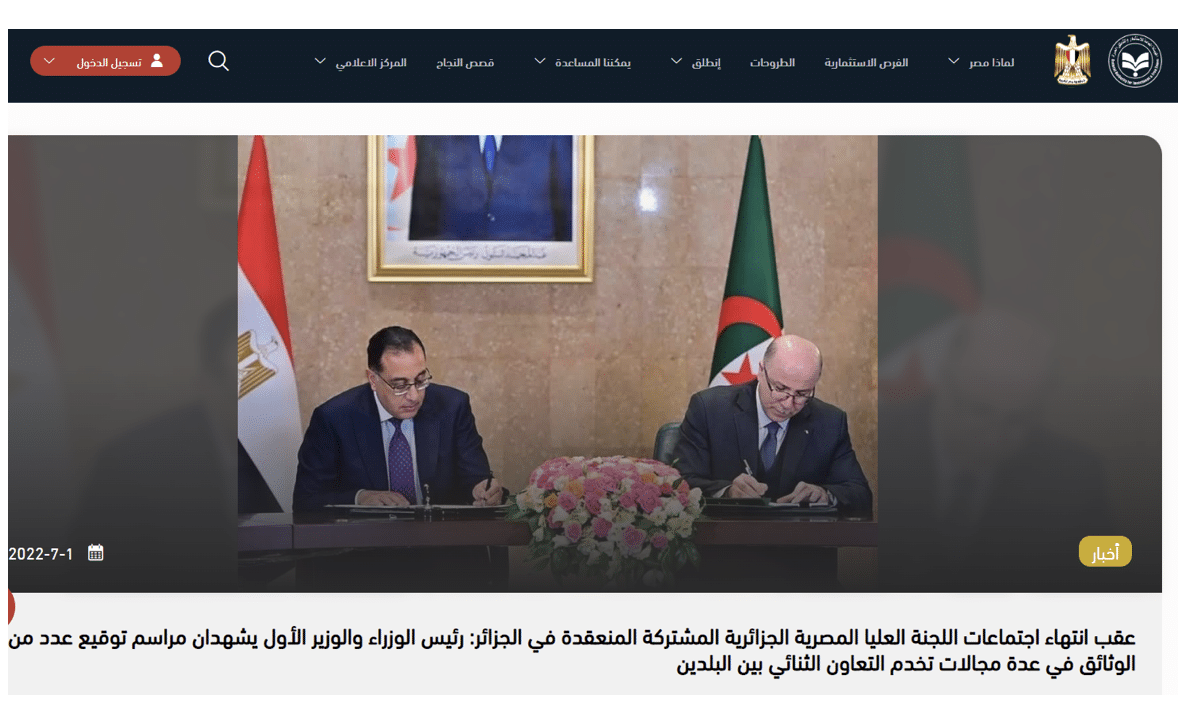 توقيع مذكرات تفاهم بين مصر والجزائر